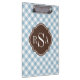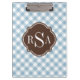 Triple Monogram Brown Blue Gingham Pattern Klemmbrett