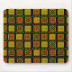 Dieses Mauspad hat ein Schwarzes Geschichtsbild von Kreisen, Dreiecken, Diamanten, Linien und Zickzacken, die ein Muster bilden.