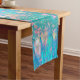 Trippy Aqua Sunrise mit psychedelischen Blume Großer Tischläufer