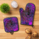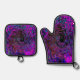 Trippy Black und Magenta Retro Liquid Swirl Ofenhandschuh & Topflappen-Set