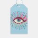 Psychedelische Augengeschenke mit einer farbenfrohen Abbildung eines bizarren blauen Auges mit großen, abgerundeten, rosa Wimpern, überall fließenden hellblauen Tränen und vielen rosa und grünen Elementen - Erweiterungen der Wimpern. Dieses Geschenk-Tag hat einen anpassbaren Namen auf der Vorderseite.