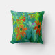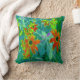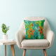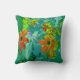 Trippy-Gelb- und Rot-Wildblumen auf Retro-Blau Kissen