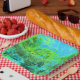 Trippy Lime Green and Blue Garden Landschaft Pappteller