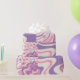 Trippy Patchwork Collage Retro Ästhetisches Abstraktes Muster Rosa und Lila. Spaß, trendiges modernes Design mit einem psychedelischen 60er 80er 90s Y2K-Ambiente. In hübschen Pastellfarben. Von Kierkegaard Design Studio.