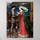 Eine Reproduktion von "Tristan and Isolde Sharing the Potion" von 1915 von John William Waterhouse. Diese Arbeit fängt den Moment ein, in dem Tristan und Isolde den Liebe-Trank konsumieren, der zu ewiger Liebe und Tragödie führen sollte. Das Originalwerk befindet sich in einer Privatsammlung. Das Wasserhaus schuf oft Szenen aus der Mythenwelt neu, wie auch viele seiner Vorreiter. Waterhouse war den englischen Maler in Rom geboren, die nach England zurückkehrten, als er fünf Jahre alt war. Er trat 1871 in die Königliche Akademie der Kunst ein, als er 21 Jahre alt war und innerhalb von drei Jahren ein erfolgreiches Gemälde hatte. In den nächsten vierzig Jahren konnte Waterhouse seinen Erfolg beibehalten und die Malerei fortsetzen, bis seine letzte Krankheit 1915 die Produktion unmöglich machte. Er starb zwei Jahre später.