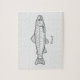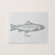 Ein einfaches Puzzle mit einer Forelle-Illustration und einer SMS-Nachricht unten für ein Jubiläumsgeschenk an einen Fischer, einen Angelführer, einen Fisch-Liebhaber, etc.