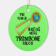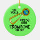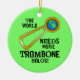 Die Welt braucht mehr Posaunentext mit dem Bild der Erde in der Glocke einer Posaune ist ein lustiges, niedriges Geschenkdesign für Hornmusiker, Schüler und Lehrer in Konzert, Jazz und Marching Band