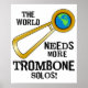 Die Welt braucht mehr Posaunentext mit dem Bild der Erde in der Glocke einer Posaune ist ein lustiges, niedriges Geschenkdesign für Hornmusiker, Schüler und Lehrer in Konzert, Jazz und Marching Band