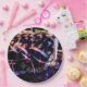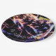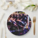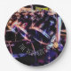 Die Grafik auf diesem PapierTeller ist eine ursprüngliche Fotografie eines Trommel-Sets. Die glänzenden schwarzen Trommeln mit ihren silbrigen Kanten reflektieren die Farben der Lichter im Studio, in den Blues, in den Rottönen und in den Grüntönen. Becken über den Trommeln warten geschlagen zu werden. Es gibt optionalen Text, dem "den Schlag geht auf" liest. Dieses ist Set, damit Sie personifizieren oder löschen, wenn Sie bevorzugen.