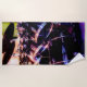 Die Grafik auf diesem Badetuch ist eine ursprüngliche Fotografie eines Trommel-Sets. Die glänzenden schwarzen Trommeln mit ihren silbrigen Kanten reflektieren die Farben der Lichter im Studio, in den Blues, in den Rottönen und in den Grüntönen. Becken über den Trommeln warten geschlagen zu werden.