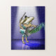 Eine niedliche Trommel mit einem Cymbal für einen Hut spielt einen Beat, der zu sichtbarer Musik wird.