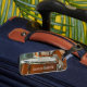 Eine moderne Fotografie der Trommeln und Schlagzeug versehen Musikinstrument mit einem Band. Gepäckumbau stark und passend für Krawatte um Ihren Instrumentkasten für Reise und Schule. Für Musiker oder Musikstudenten oder Liebhaber von Musik.