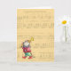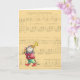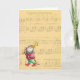 Diese Karte zeigt eine Illustration einer niedlichen kleinen Maus, die eine Trompete auf seiner Schulter trägt. Auf dem Hintergrund ist ein Entwurf der nostalgischen Noten. Große Karte für einen Musikfreund.