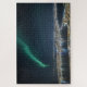 Grüne Nordlichter (Aurora borealis) oberhalb der Stadt Tromsø in Nordnorwegen, Skandinavien.