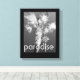 Tropen gedehnte Leinwand Wand Palmen Foto Schwarz-Weiß-Foto mit Text Paradies für die Dekoration in Zuhause oder Büro. Fotografie und Originalkunst von Ann Powell über Leinwand und Wandkunst.