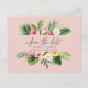 Schönes modernes tropisches Wasserfarbenfolien Postkarte. Teil einer Hochzeitsfeier im Sommer.
