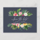 Schönes modernes tropisches Wasserfarbenfolien Postkarte. Teil einer Hochzeitsfeier im Sommer.