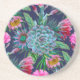 Aquarellfarbene exotische tropische Sukkulturen, Kakteen und Bananen Blätter Blume Garten auf einem dunkelblauen Hintergrund