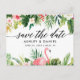 Moderne elegante Kalligraphie, tropische Wasserfarben, Blumenzwiebeln und Grün-Hochzeit sichern das Datum Postkarte