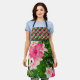 Hübsche und trendige rosa Blüte mit tropischen Blätter auf einem dunkelblauen Hintergrund feminine gemischte Printmedien-Schürze.