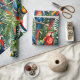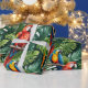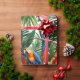 Papagei-Papagei-Papagei mit Blätter aus Dschungelpalmen, rotem Papagei, blauem und gelbem Papagei, farbenfroh, exotische Geschenkpackung