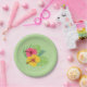 Servieren Sie Ihr Lieblingsessen auf diesem schönen Party. Ein hellgrüner Hintergrund mit Hibiskus auf mehreren Grünflächen vervollständigt diesen Teller. Perfekt für jede Veranstaltung!