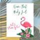 Das Design der Baby-Dusche ist mit rosa Flamingo mit üppig grünen Palmenblättern und tropischen Hibiskus-Blume ausgestattet. "Aloha Baby" Ein tropisches Blumenmuster mit schwarzer Hintergrundfarbe zieht die Rückseite der Karte hoch.