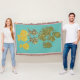 Mosaik, grafischer zeichn, mit Gruppe, gestreift, und Schablone-gemustert, Fisch in leuchtenden Farben dargestellt; orange, rot, gelb, goldgelb, taupe, braun, schwarz und weiß, auf robinblauem Hintergrund.