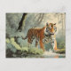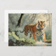 Ein schöner Tiger, der im Wald spaziert. Vintage Postkarte.