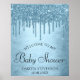 Glitzy glam kalligraphische Skript Baby Dusche Thema auf einem feminin türkis und aqua blauen Glitzer Farbe drizzle in einem schmelzenden Muster Hintergrund. Aus der Kollektion "Icing Tropfen" zeichnet sich diese gürtelförmige Textur durch einen metallischen Imitat aus, der mit einem imposanten funkelnd Schimmer perfekt für jede Veranstaltung oder jeden Tag geeignet ist. Für andere Farben oder passende Produkte wenden Sie sich bitte an den Designer.
