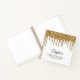 Erstellen Sie Ihr eigenes Graduiertenpartydesign auf einem leeren Notebook. Girly Imitats funkelnd tropfen Gold Glitzer über massiv weiß oder die Hintergrundfarbe Ihrer Wahl. Passen Sie die Stile des Schriftartes an, um Ihr eigenes Gästebuch zu kreieren. Eine klassische, elegante Kalligraphie gepaart mit einem Schriftart aus Serifen. Das digitale Kunstwerk druckt wie ein Foto auf diesem Design.