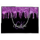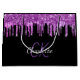 Ein eleganter schwarzer Hintergrund mit lila und rosa Imitaten Glitzer Tropfen, Maltropfen Aussehen. Personalisieren und fügen Sie Datum, Namen und Alter hinzu. Eine moderne Handschrift, lila Buchstaben. Ideal für Geschenkpackungen oder Gastgeschenke für Geburtstagspartys, Brautparty- und Babyduschen.