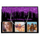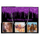 Für einen 50. Geburtstag (oder jedes Alter). Ein eleganter schwarzer Hintergrund. Mit lila Imitaten Glitzer Tropfen, Farbe Tropfen aussehen. Personalisieren und fügen Sie 3 Ihrer eigenen Fotos, ein Datum, Name und Alter 50. Lila Text. Der Name ist mit einem modernen handgeschriebenen Stilskript geschrieben.