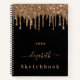 Ein eleganter schwarzer Hintergrund mit goldenen Glitzer-Tropfen aus Imitat, tropfender Malerei. Personalisieren und fügen Sie ein Jahr, einen Namen und einen Titel hinzu. Der Name ist mit einem goldenen, großen, modernen Handschrift geschrieben Stift. Ideal für Skizzen, Schulen, Arbeiten oder die Organisation Ihres Privat-/Familienlebens. Um die Swashes behalten, löschen Sie nur den Beispielnamen, verlass die Leerzeichen oder Emoji's vor und nach dem Namen.