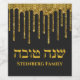 Tropfen aus Schwarz und Gold Glitzer Hebräisches Rosh Hashanah Weinetikett