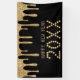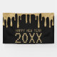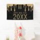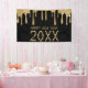 Schwarz und Gold Glitzer Tropfen glücklich neues Jahr Banner. Personalisieren Sie es, indem Sie das Jahr ändern. Ideal für ein Silvester Party oder Event.