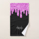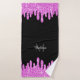 Persönliche Badetücher Set Wohngestaltung mit Ihrem Initial und Namen. Leichte lila rosa tropfende Imitate Glitzer Glitzern tropfen auf schwarz. Wir benutzen Fotos von Glitzern. Bitte beachten Sie, dass wir den aktuellen Glitzer nicht verwenden!