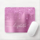 Individuell elegantes und gürtelndes Mauspad mit rosa Imitaten Glitzer, das vor einem rosa Imitat mit metallischem Hintergrund tropft. Monogram mit Ihrem Namen in einem stilvollen, trendigen weißen Skript mit Swashes.