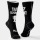 Trophy Husband gift socks with custom name. Funny socks for husband / wedding groom. Black and white or custom colors.