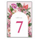 Begleiten Sie Ihre Gäste stilvoll mit unserer eleganten Tropical Baby Shower Tischnummer, die Ihr tropisches Babyduschthema ergänzt. Die üppig grünen Palmen und Monstera-Blätter, die blühenden Orchideen von Magenta und Fuchsia und die zarten Blume von Rosa Hibiskus sorgen für eine romantische und moderne Touch.