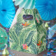 Das ist ein Muster aus grünen und aquamarinen tropischen Bananen-, Palm- und Monstera-Blätter und hellroten, gelben, orangefarbenen und rosa Strelitzia- und Plumeria-Blume auf einem hellen grünen Hintergrund. Sie können die Hintergrundfarbe ändern, indem Sie auf den Button "Personalisieren" klicken und dann auf die Inschrift "Klicken Sie, um weiter anzupassen".