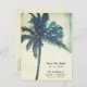 Günstige Save the Date Postkarten für Ihre Hochzeit am Strand oder in den Tropen. Vintages Palmendesign, mit Ihren Hochzeitsdetails auf der Vorder- und Rückseite der Karte.