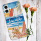 Entspannen Sie in stilvollem Ambiente mit diesem personalisierten tropischen Stranddesign auf Ihrem nächsten Telefongehäuse mit lebhaften Ozeanwellen, einer gemütlichen Palme und einer gemütlichen Strandeinrichtung mit gestreiften Liegestühlen und Sonnenschirmen. Dieses Design ist perfekt für Strandliebhaber, Urlaubsvibes und Ästhetik an der Küste geeignet und bringt die Wärme des Sommers, egal wohin Sie gehen. Passen Sie es mit Ihrem Namen für eine einzigartige, persönliche Touch an!