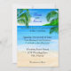 Beach Thema Hochzeit Einladungen mit tropisch blauen Wasser und Palmen. Große Hochzeitseinladungen für Strand oder Hochzeiten in Urlaubsort. Strandkunst mit Sandstrand, Palmen und tropischem blauem Wasser-Hintergrund für Ihre personalisierte Einladung. Matching UAWG, Dankeschön's, und zusätzliche Hochzeitsprodukte zur Verfügung.