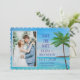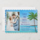 Tropischer Strand, Ozean, Küste, Palmen, Aquarell, Ziel Save the Date Hochzeitseinladungen. Rustikal, Drehbuch, Foto, Save the Date Einladungen. Bitte personalisieren Sie es mit Ihren Daten.