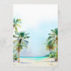 Dieses elegante und schöne Hochzeitsmenü in Aquarellfarben bietet einen Strand, blauen Himmel und Palmen. Der Text kombiniert handgeschriebene Skripte mit serifenlosen Schriftart für ein stilvolles und modernes Design. Dies ist ideal für einen Sommerstrand oder eine tropische Hochzeit in Urlaubsort.