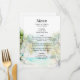 Dieses elegante und schöne Hochzeitsmenü in Aquarellfarben bietet einen Strand, blauen Himmel und Palmen. Der Text kombiniert handgeschriebene Skripte mit serifenlosen Schriftart für ein stilvolles und modernes Design. Dies ist ideal für einen Sommerstrand oder eine tropische Hochzeit in Urlaubsort.