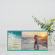 Ankündigen Sie Ihre lässige und dennoch elegante anstehende Insel-Stil-Heirat Zeremonie und Empfang mit der hübschen Tropical Beach Wedding Save the Date Foto Card. Diese maßgeschneiderte Tropenhochzeit behalte die Datumsanzeige Fotokarte mit einem landschaftlichen Naturfoto des türkisfarbenen oder aqua-blauen Ozeans an einem weißen Sandstrand mit Palmen und aquamarinem wirbelfarbenem Design.