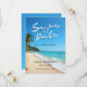 Entdecken Sie das Paradies mit diesen "Save the Date"-Tropenkarten, die eine sonnige tropische Strandlandschaft mit Palmen und Meereswellen beherbergen. Ideal für eine Hochzeit in Urlaubsort, kann dieses Design mit Ihren Namen, Hochzeitstag und Ort personalisiert werden. Eine wunderschöne Art, Ihren Gästen lassen, ihre Kalender zu markieren und sich auf Ihre unvergessliche Feier am Meer vorzubereiten.