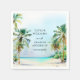 Diese elegante und schöne Hochzeitsserviette in Aquarellfarben verfügt über einen Strand, einen blauen Himmel und Palmen. Der Text kombiniert handgeschriebene Skripte mit serifenlosen Schriftart für ein stilvolles und modernes Design. Dies ist ideal für einen Sommerstrand oder eine tropische Hochzeit in Urlaubsort.